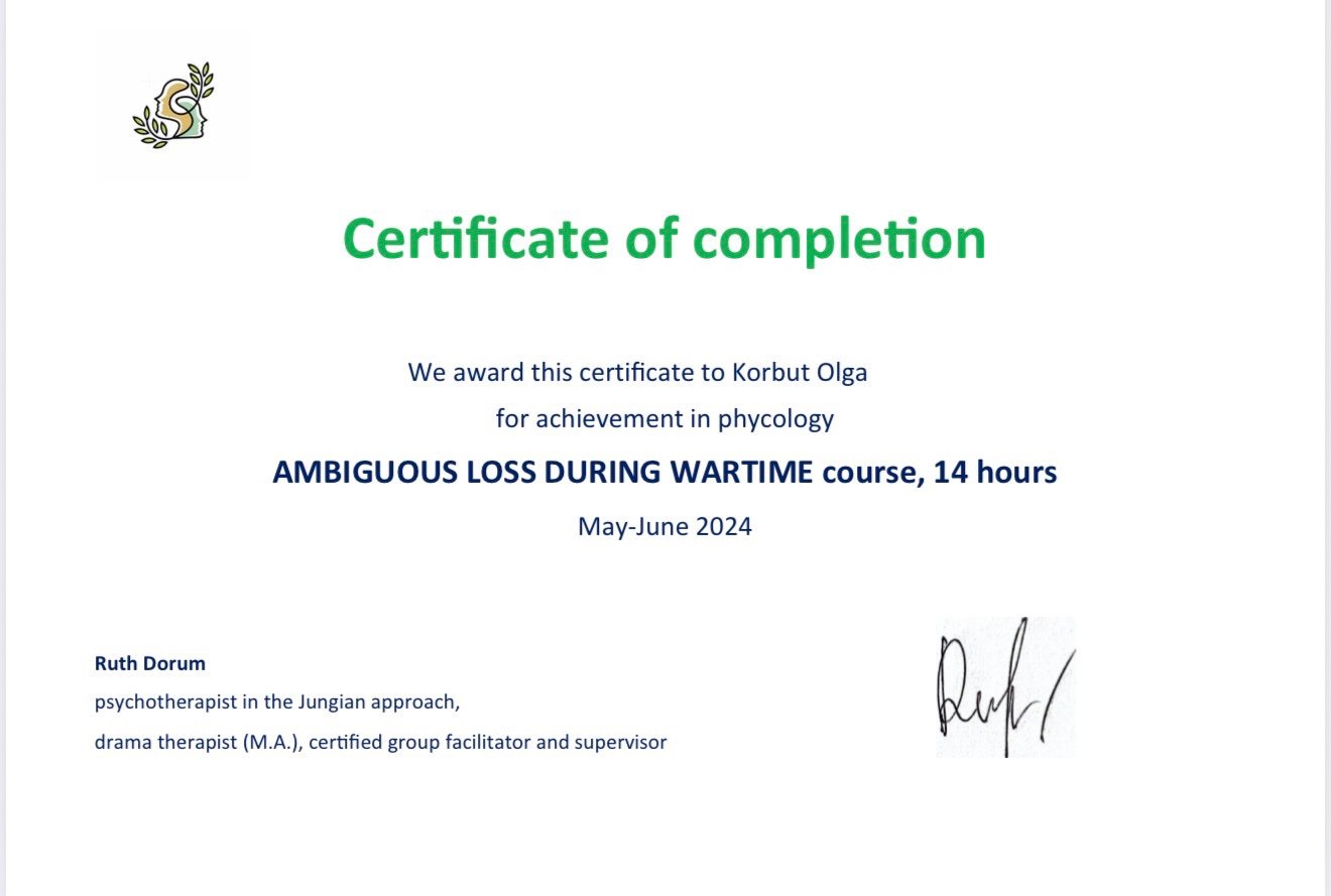 2023 - спеціалізація по роботі з тими, хто зіткнувся з невизначеною втратою